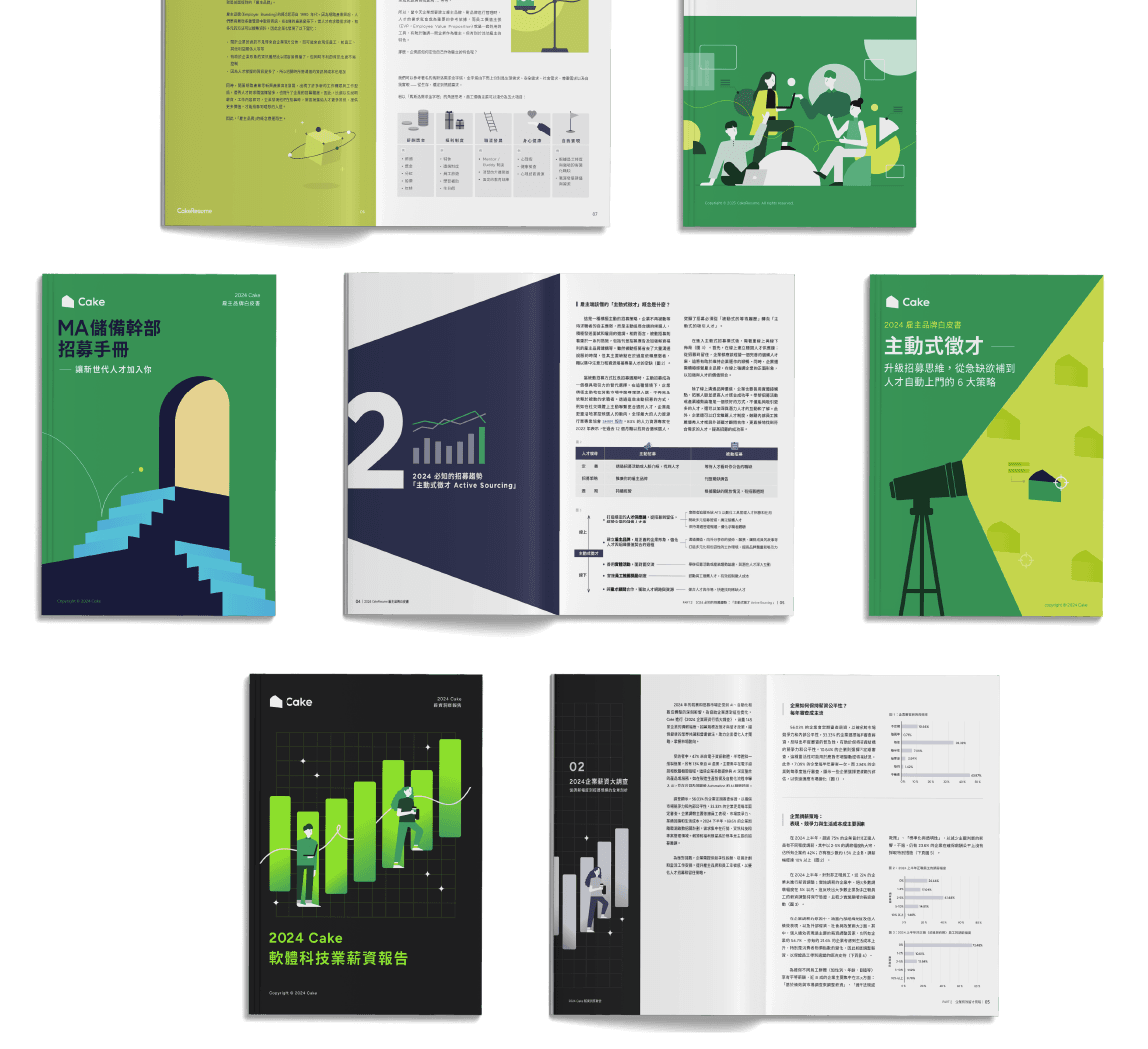 從打造具吸引力的雇主品牌、善用 AI 等工具提升招募效率 ,到定錨你的主動式徵才策略,Cake 為你準備一系列資源和方法,全面掌握關於招募的核心秘訣和實戰策略!立即免費下載,開始提升你的招募效率、擴大公司品牌影響力。
